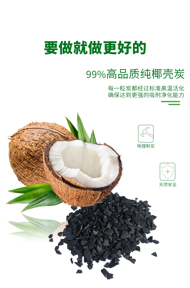 椰維炭是以椰殼為原料,經高溫活化、碳化處理,同時負載光觸媒、碳纖維而成的一種新型活性炭。其對有機氣體吸附能力比普通活性炭高5倍至以上,吸附速率更快。
